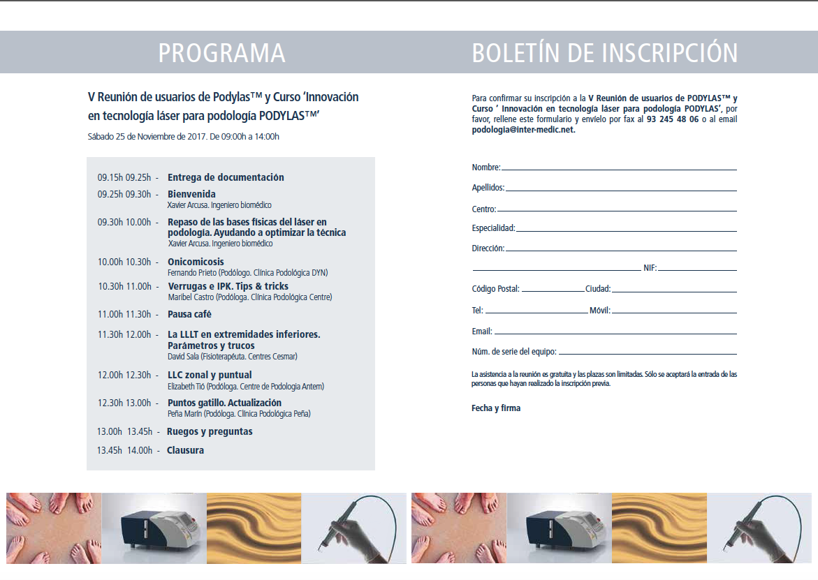 V REUNIÓN ANUAL DE USUARIOS DE PODYLAS™ y CURSO ‘INNOVACIÓN EN TECNOLOGÍA LÁSER PARA PODOLOGÍA PODYLAS™’